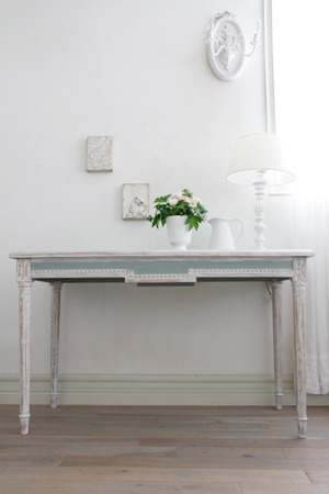 実はこーゆーの好きなんですよ。 あまりにシャビーだとお化け出そうで(勝手な解釈(笑)苦手なんですが、その中でもちょっと明るくてモダンなモノとも合いそうな家具が好きです。 白でもちょっとエレガントが入ってるのがいいですね。 ショップはサラグレースというお店。
