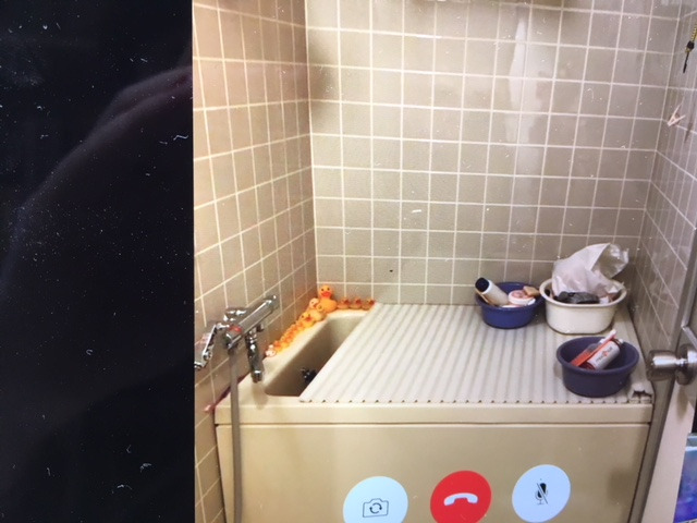 「実は毎日ジムでシャワーをしているので」と。 ということでバスルームは事務用品や入浴セットの置き場所となっていました。