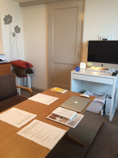 右奥のPCデスク、右はキッチンへの入り口です。 ほんとちょうどいいサイズがありました。