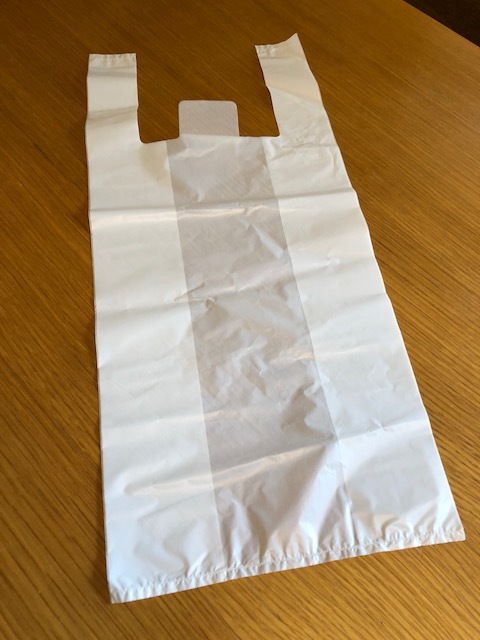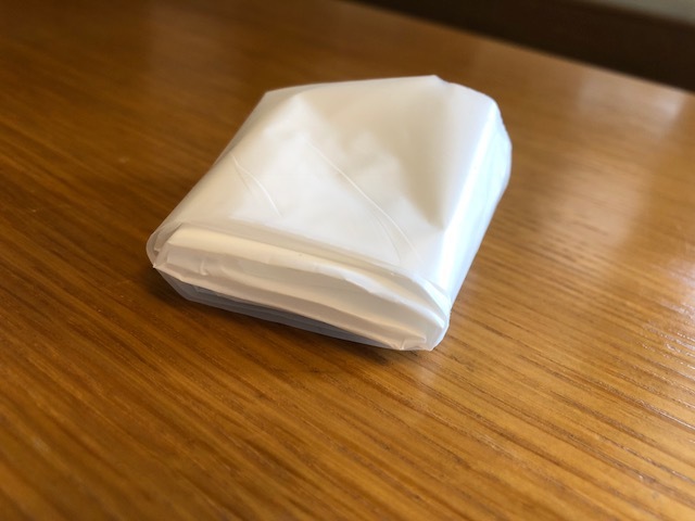 1、ポリ袋を縦の折り目に沿ってなんとなく縦にたたむ(きちんとしなくてオッケー)