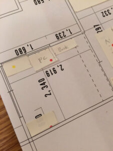 用意するものは、付箋と三角スケール。もちろん平面図も。